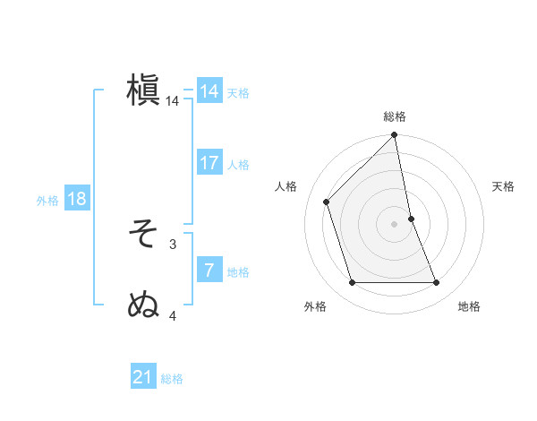 槇 そぬさんの天格は14画の1点!