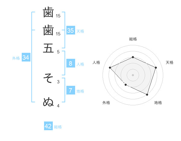 歯歯五 そぬさんを姓名の画数から五運を鑑定