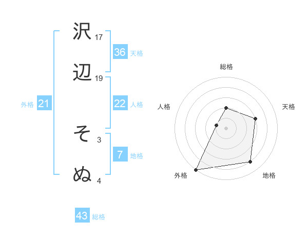 沢辺 そぬさんの外格は21画の5点!
