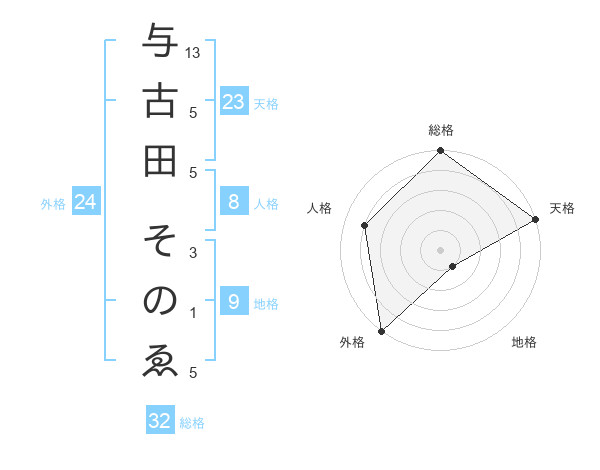 与古田 そのゑさんの総格は32画の5点!
