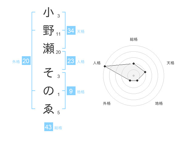 小野瀬 そのゑさんを姓名の画数から五運を鑑定