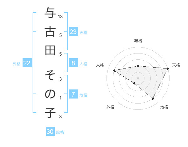与古田 その子さんの天格は23画の5点!