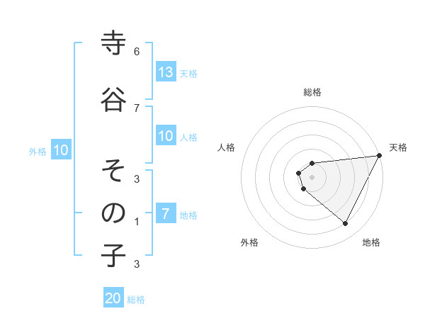 寺谷 その子さんの天格は13画の5点!
