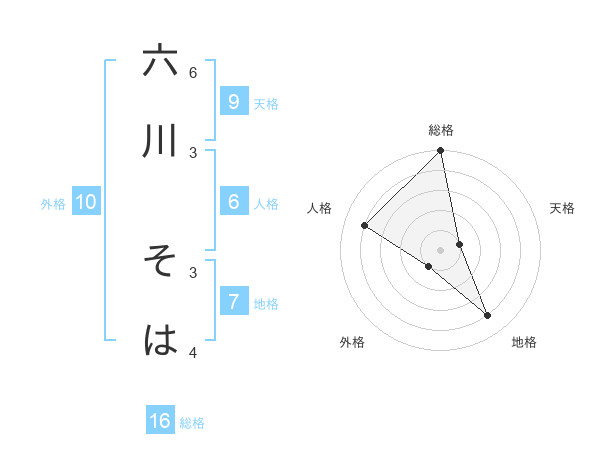 六川 そはさんの総格は16画の5点!
