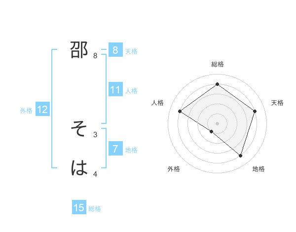 邵 そはさんの総格は15画の4点!