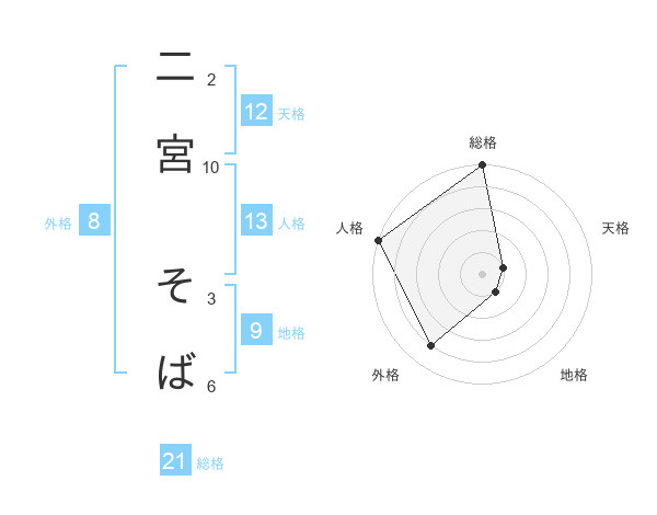 二宮 そばさんの総格は21画の5点!