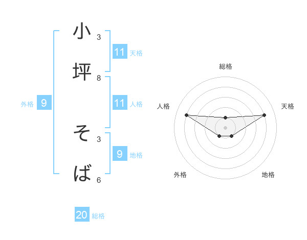 小坪 そばさんの総格は20画の1点!