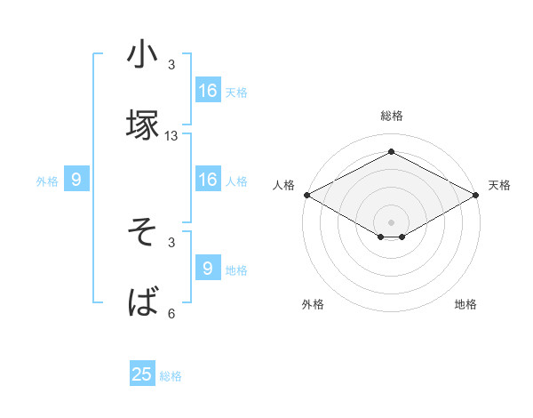 小塚 そばさんの天格は16画の5点!