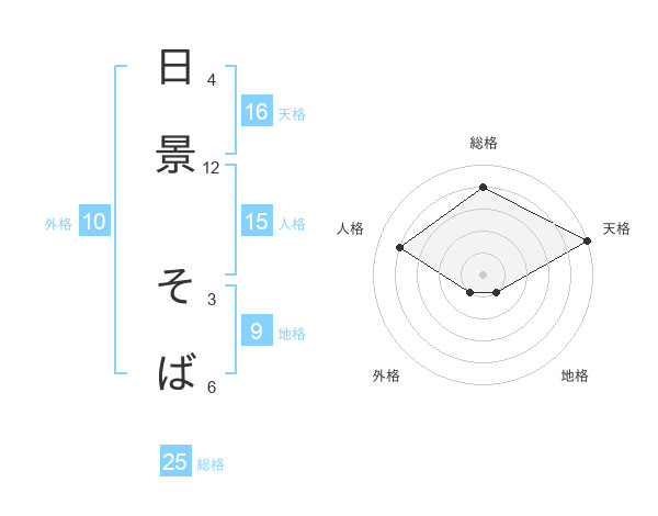 日景 そばさんの天格は16画の5点!
