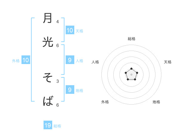 月光 そばさんの総格は19画の1点!