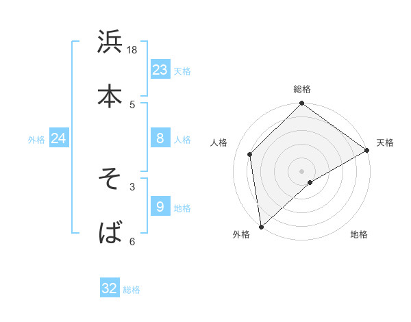 浜本 そばさんの総格は32画の5点!