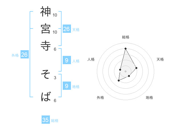 神宮寺 そばさんの総格は35画の4点!