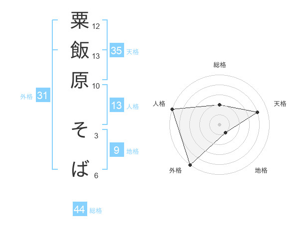 粟飯原 そばさんを姓名の画数から五運を鑑定