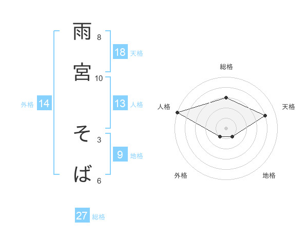 雨宮 そばさんを姓名の画数から五運を鑑定