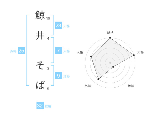 鯨井 そばさんを姓名の画数から五運を鑑定