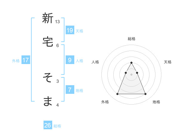 新宅 そまさんの総格は26画の2点!