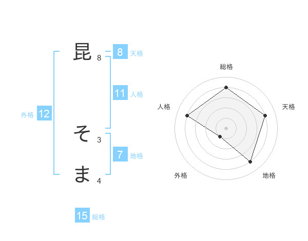 昆 そまさんの天格は8画の4点!