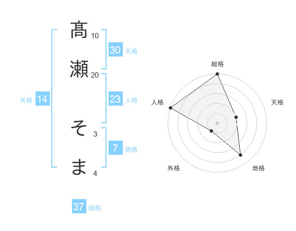 髙瀬 そまさんの総格は37画の5点!