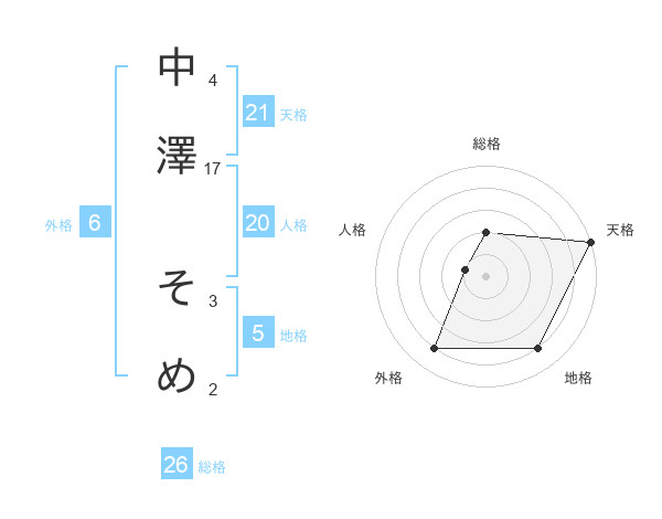 中澤 そめさんの外格は6画の4点!