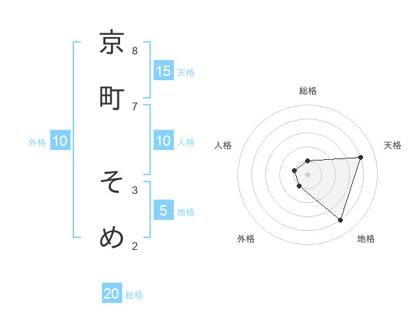 京町 そめさんの天格は15画の4点!