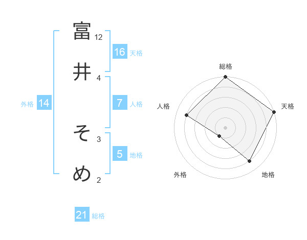 富井 そめさんの総格は21画の5点!