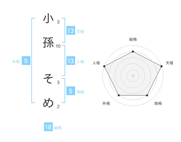 小孫 そめさんの天格は13画の5点!