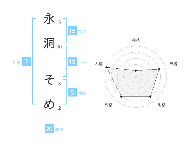 永洞 そめさんの天格は15画の4点!
