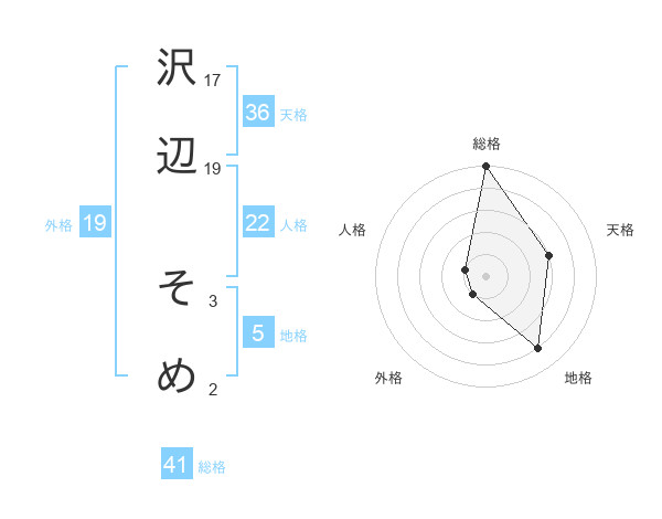 沢辺 そめさんの総格は41画の5点!
