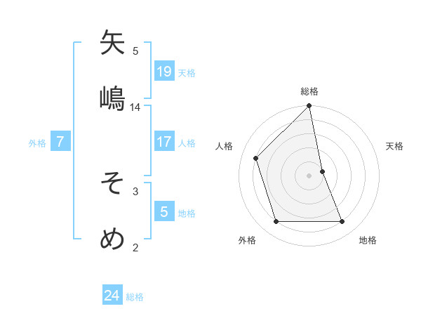 矢嶋 そめさんを姓名の画数から五運を鑑定
