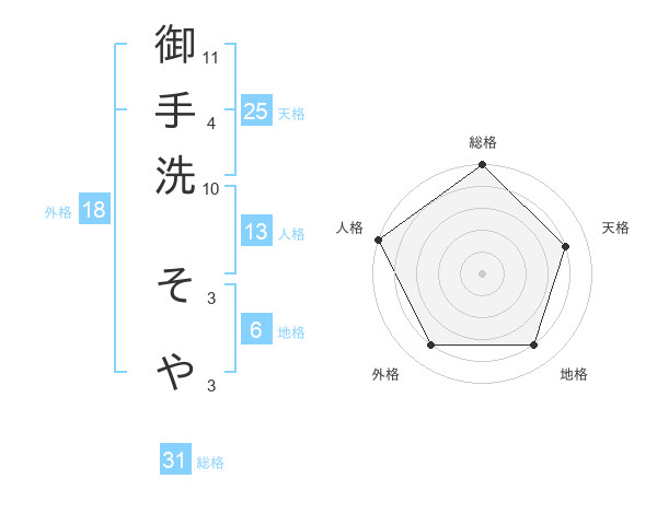 御手洗 そやさんの総格は31画の5点!