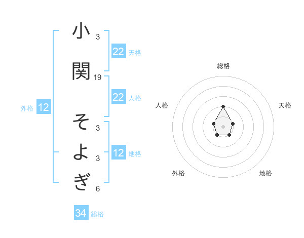 小関 そよぎさんを姓名の画数から五運を鑑定
