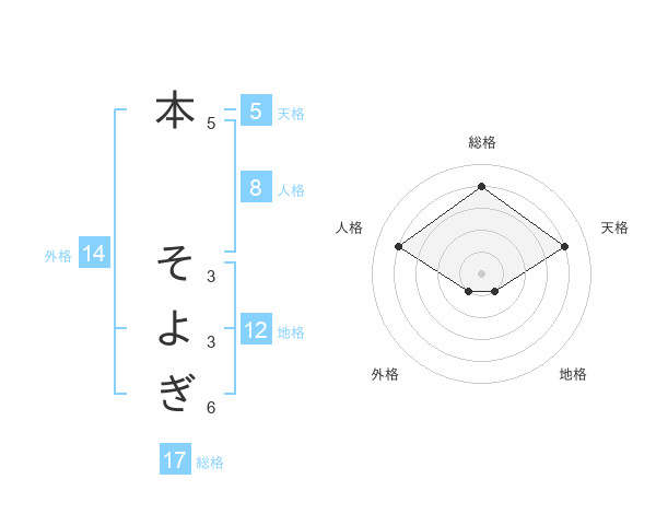 本 そよぎさんの総格は17画の4点!