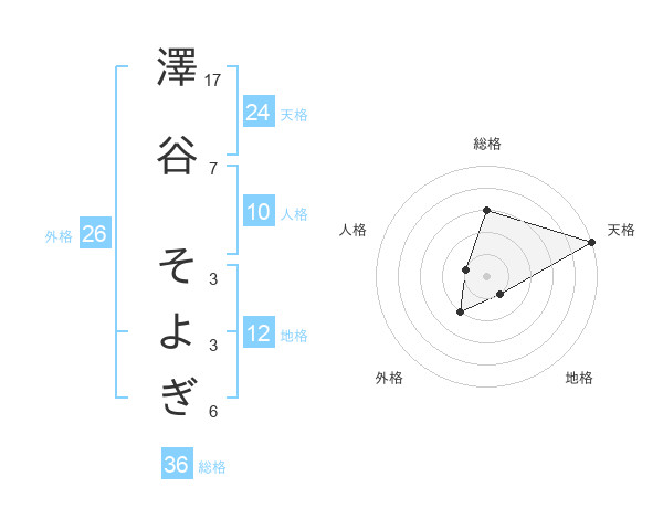 澤谷 そよぎさんを姓名の画数から五運を鑑定