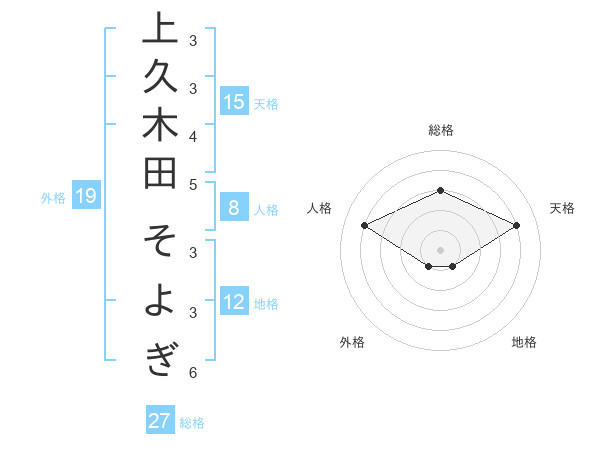 上久木田 そよぎさんを姓名の画数から五運を鑑定