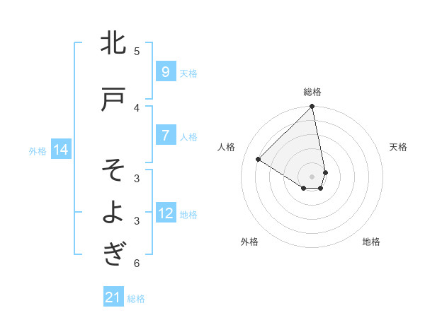 北戸 そよぎさんを姓名の画数から五運を鑑定