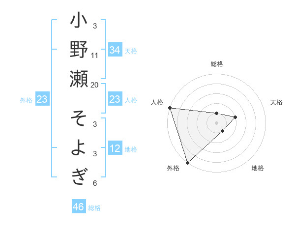小野瀬 そよぎさんの外格は23画の5点!
