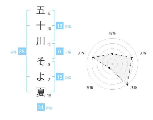 五十川 そよ夏さんを姓名の画数から五運を鑑定