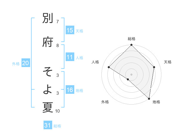別府 そよ夏さんを姓名の画数から五運を鑑定