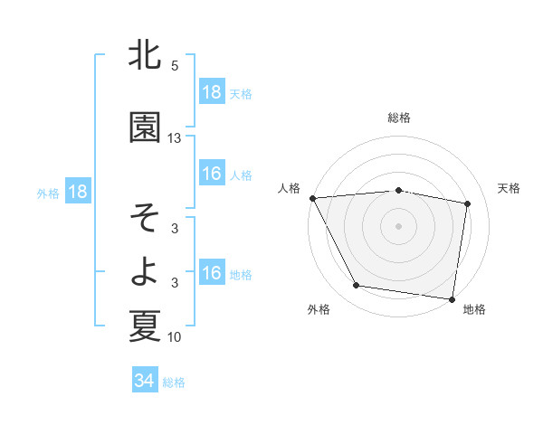 北園 そよ夏さんを姓名の画数から五運を鑑定