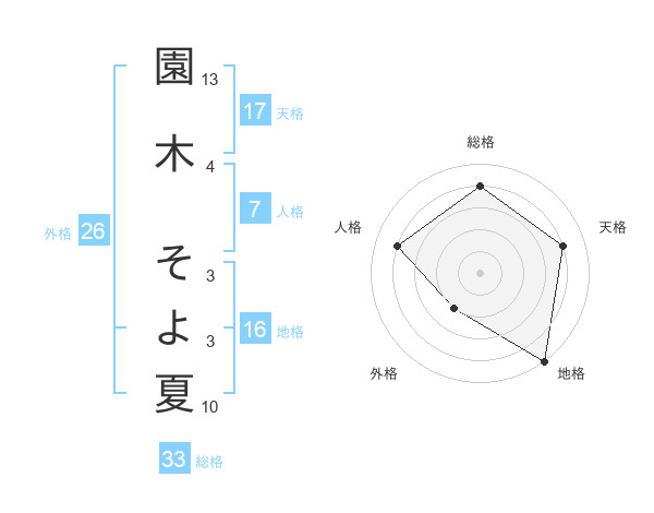 園木 そよ夏さんを姓名の画数から五運を鑑定