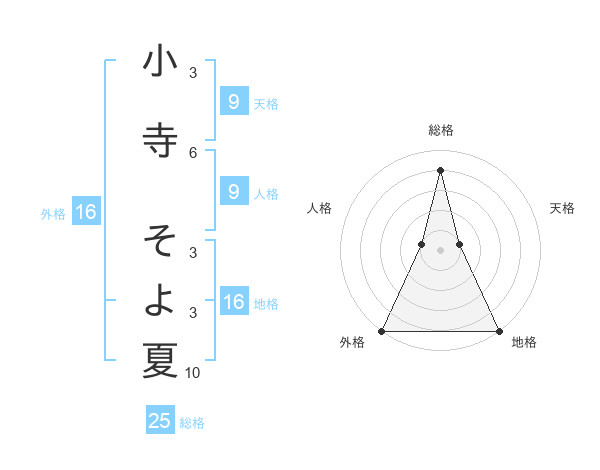 小寺 そよ夏さんを姓名の画数から五運を鑑定