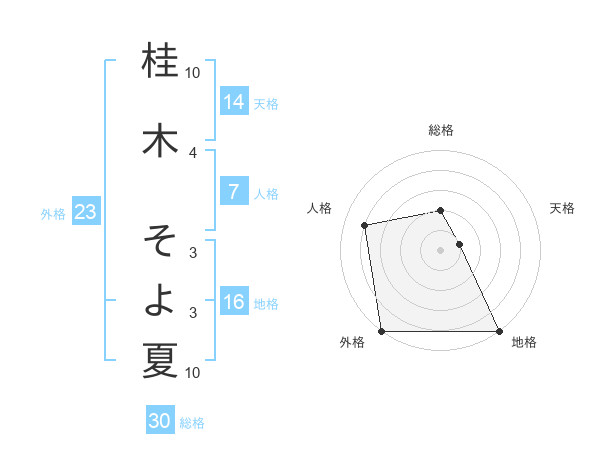 桂木 そよ夏さんを姓名の画数から五運を鑑定