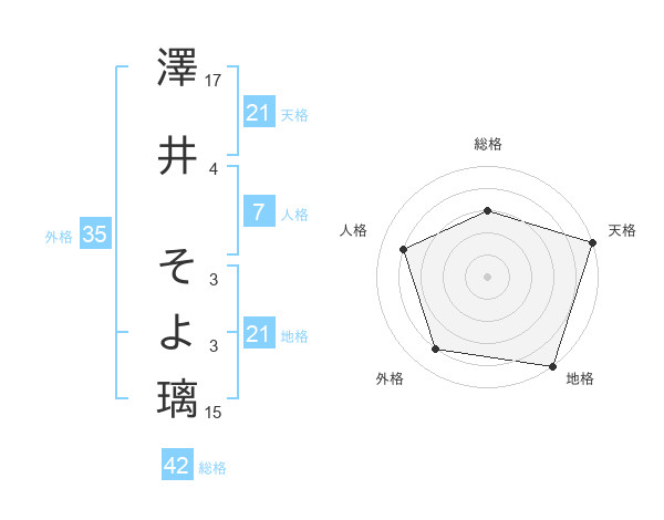 澤井 そよ璃さんを姓名の画数から五運を鑑定