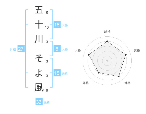 五十川 そよ風さんを姓名の画数から五運を鑑定