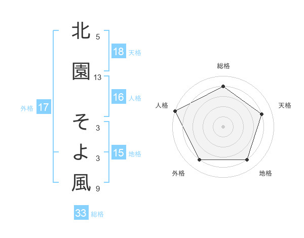 北園 そよ風さんを姓名の画数から五運を鑑定