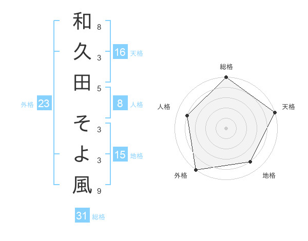 和久田 そよ風さんを姓名の画数から五運を鑑定