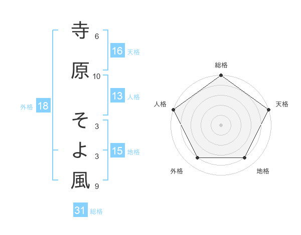 寺原 そよ風さんを姓名の画数から五運を鑑定