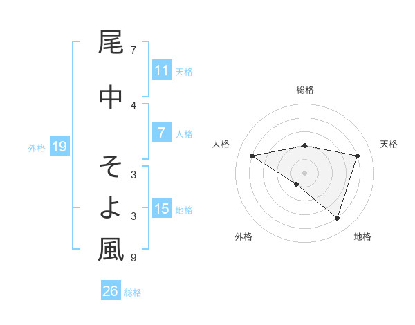 尾中 そよ風さんの天格は11画の4点!
