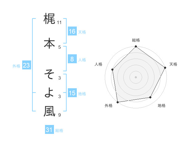 梶本 そよ風さんを姓名の画数から五運を鑑定