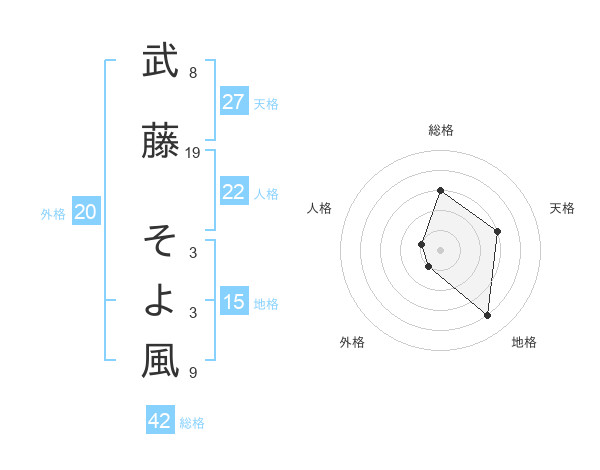 武藤 そよ風さんの総格は42画の3点!